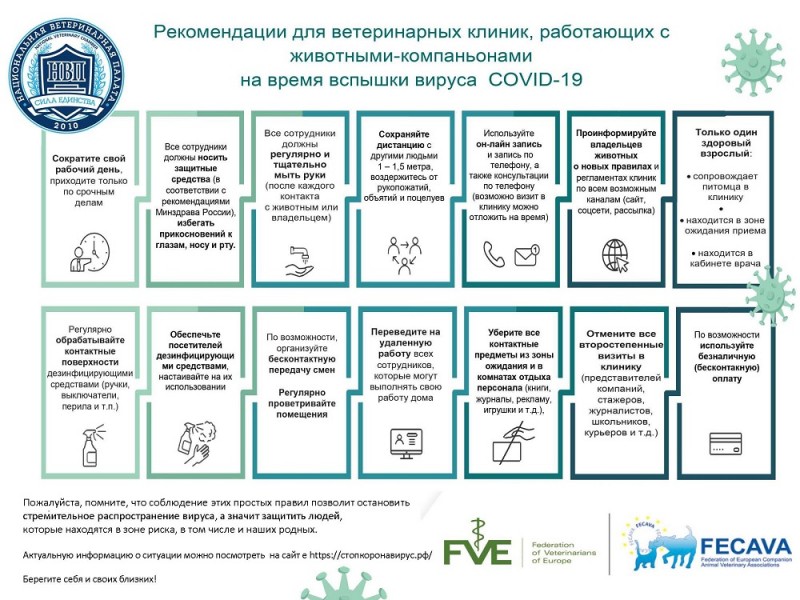 Уважаемые коллеги Национальная ветеринарная палата подготовила рекомендации для вас и для владельцев домашних животных, связанные со вспышкой COVID-19.